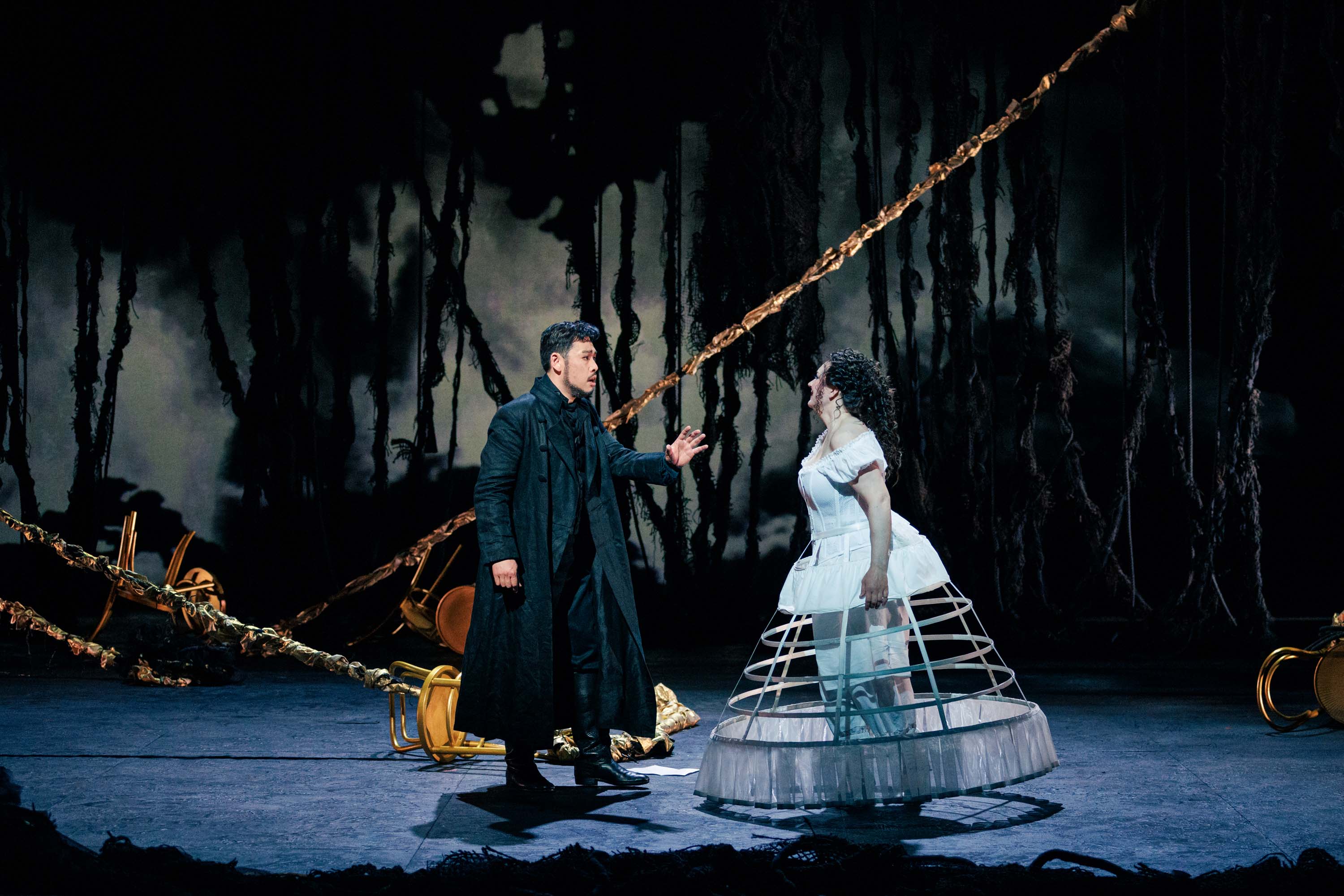 Auf einem Fest in der Provinz verliebt sich die junge, verträumte Tatjana in den weltmännischen Eugen Onegin und gesteht ihm in einem der berührendsten Liebesbriefe der Opernliteratur ihre Gefühle – die er allerdings nicht zu erwidern weiß. Bald darauf tötet Onegin seinen besten Freund Lenskij im Duell, reist ab und lässt sich noch tiefer in die sinnlose Leere seines Daseins fallen. Als er Jahre später Tatjana wiedersieht, ist vieles anders …